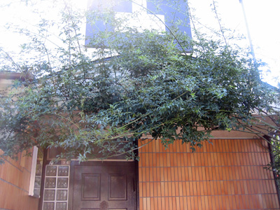 9月中旬・北側入り口の白モッコウバラも大きく枝葉が伸びています